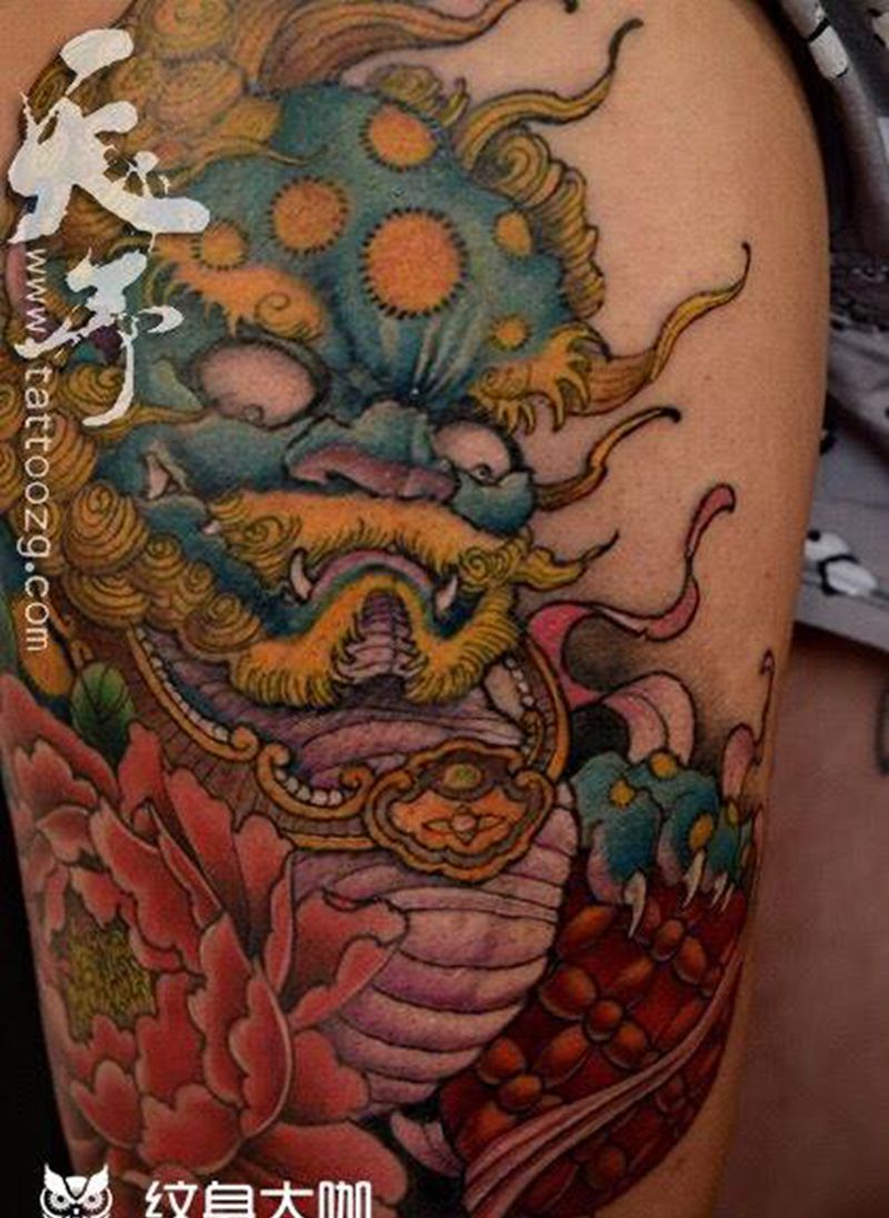 西安天予刺青传统作品纹身图片_成品腿部臀部传统鬼神原创动物西安彩色纹身图案