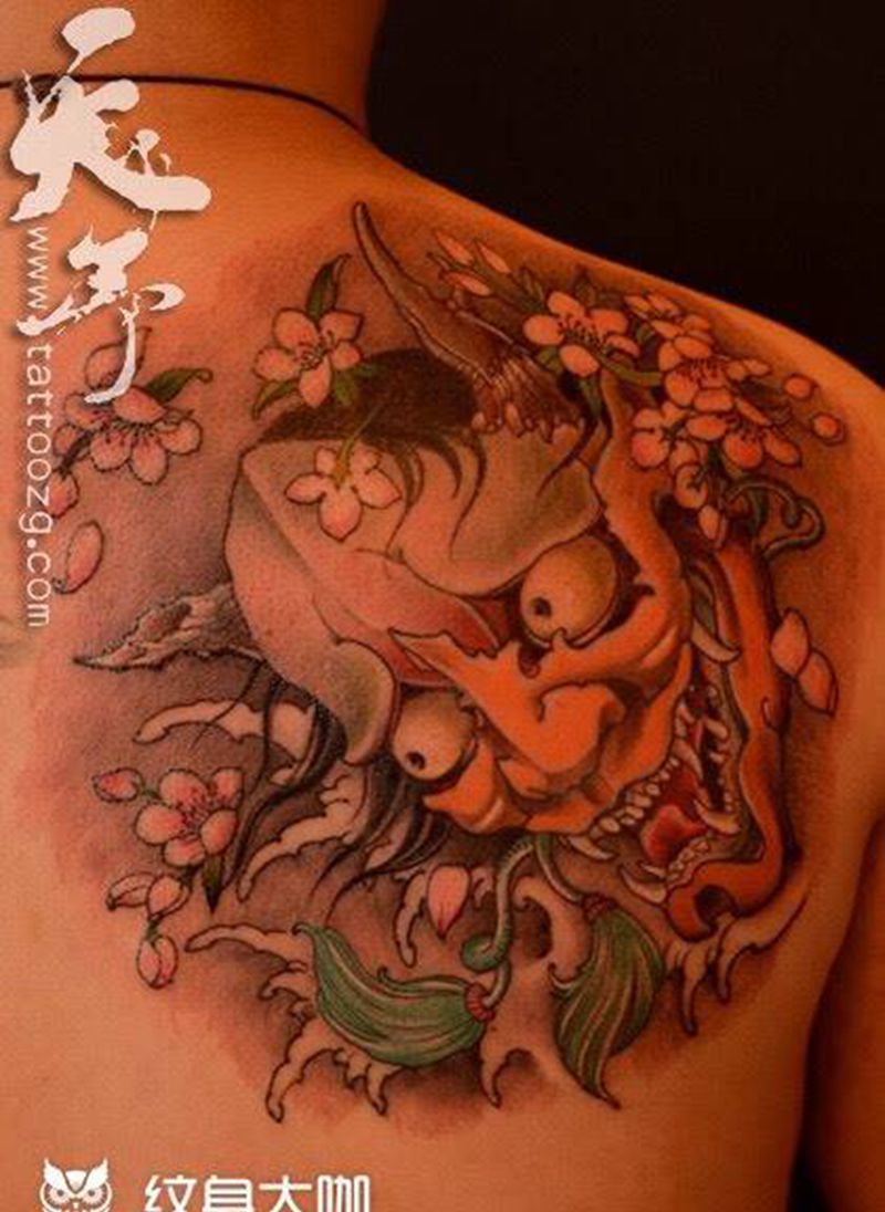 西安天予刺青传统作品合集纹身图片_成品肩部背部手臂传统鬼神原创人物西安黑灰纹身图案