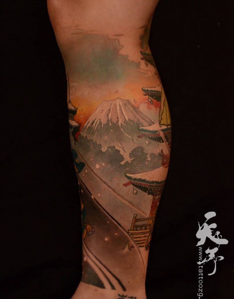 • T网红王老大花腿龙纹身图片_腿部新传统纹身图案
