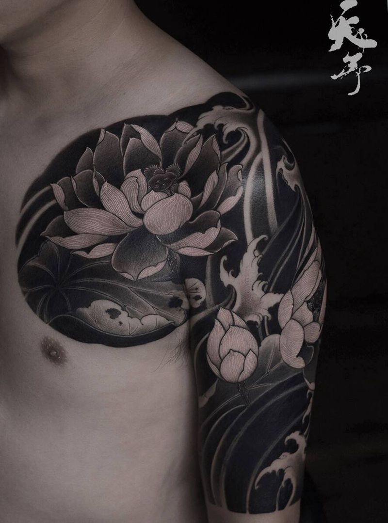 一组15张莲花纹身手