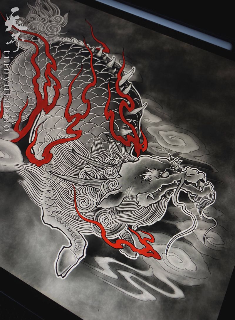 黑灰满背纹身图案