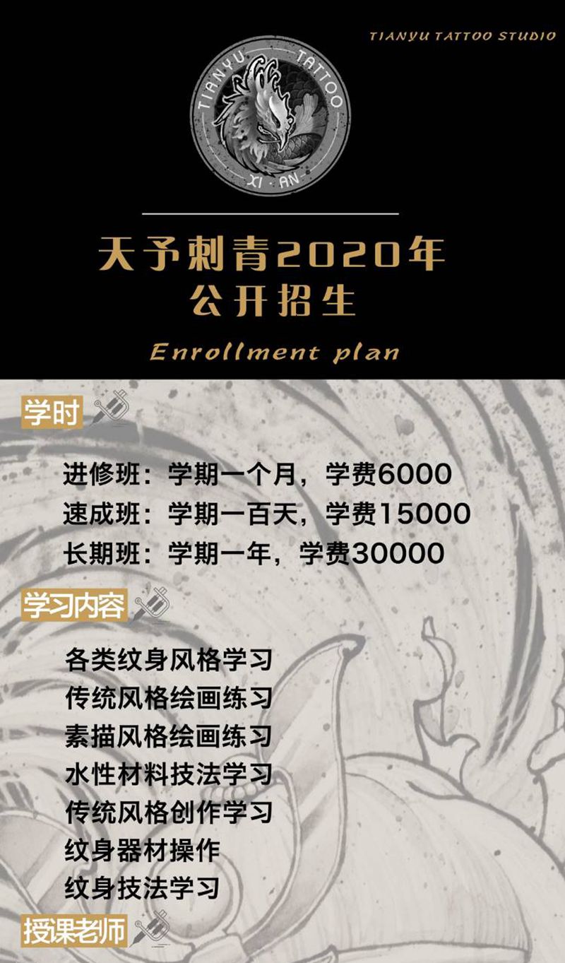 当前位置: 首页 >陕西省西安市纹身店-西安天予刺青纹身图案>天予刺青招生开始啦