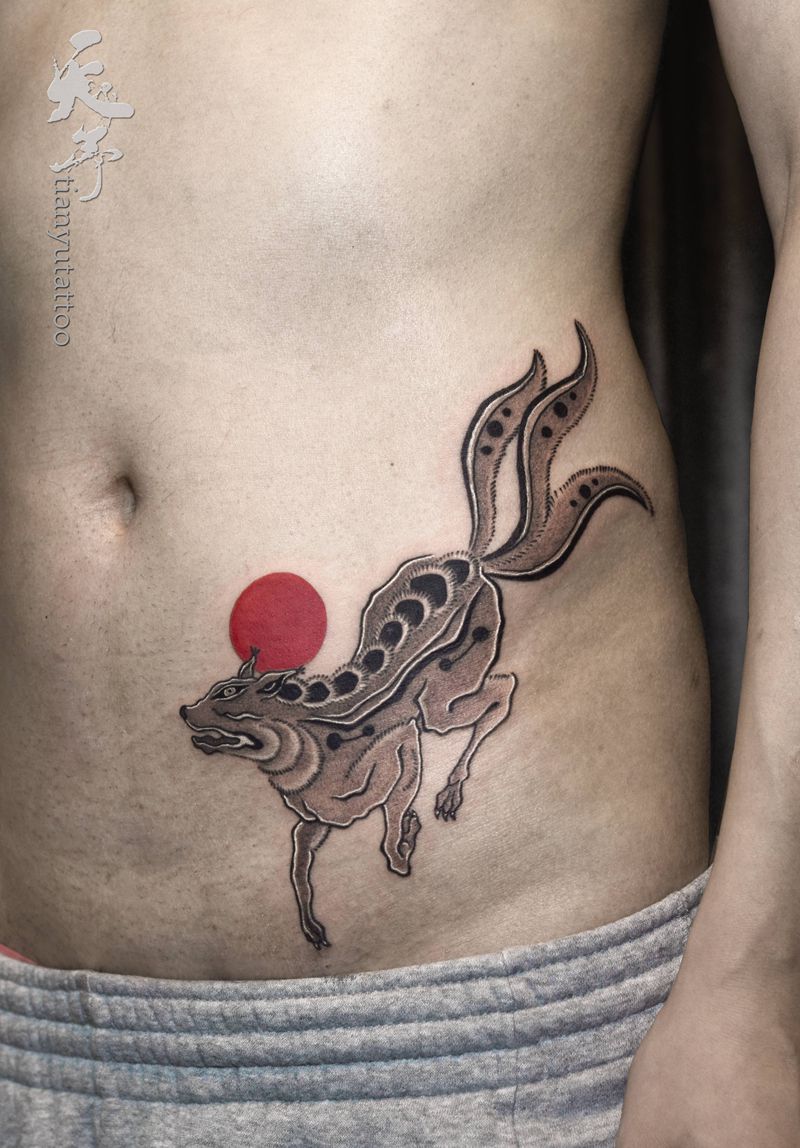 当前位置: 首页 >陕西省西安市纹身店-西安天予刺青纹身图案>【每日作品】讙(huān)纹身图片_腹部老传统新传统纹身图案