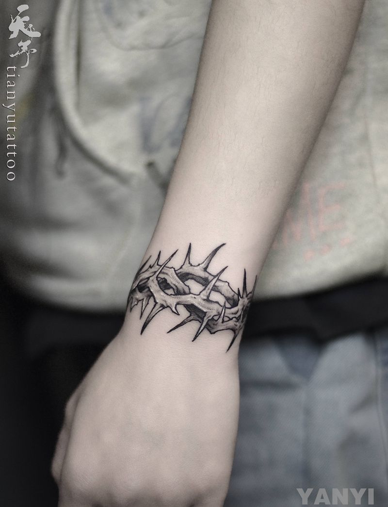 手腕荆棘遮盖纹身图片_手部手臂几何图腾纹身图案