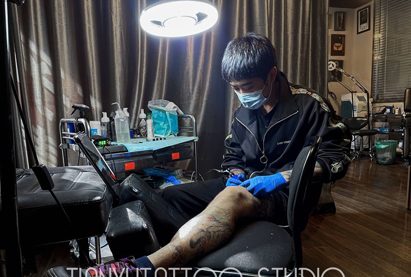 • T网红王老大花腿龙纹身图片_腿部新传统纹身图案
