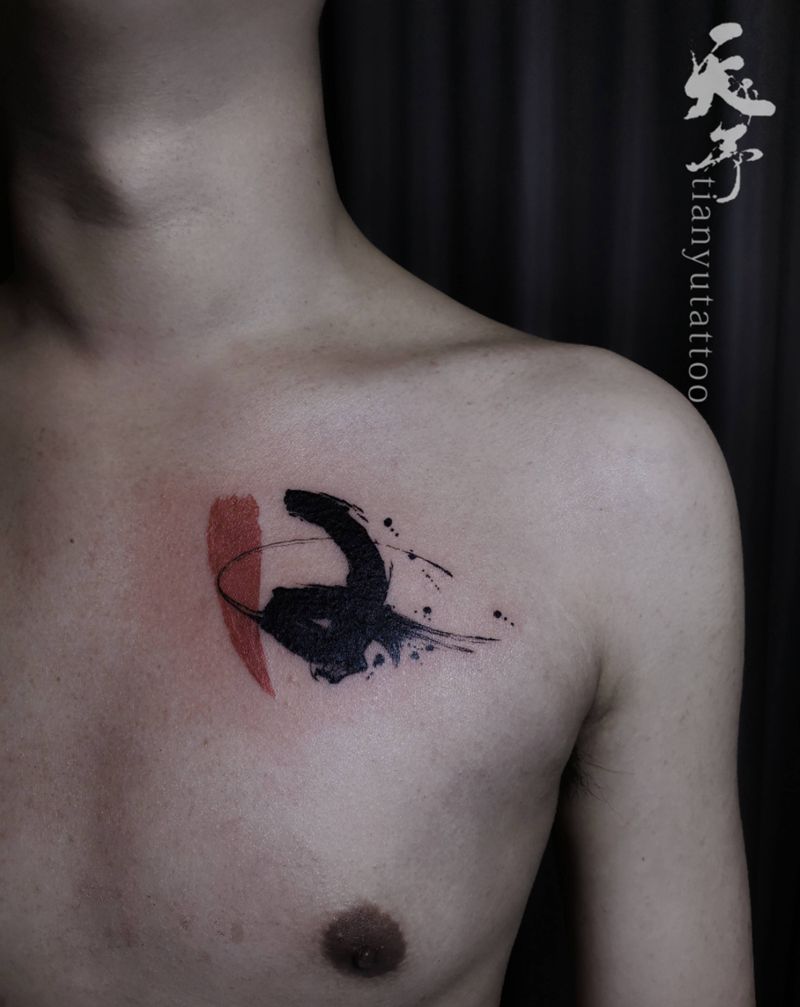 西安纹身|西安|天予刺青纹身图片_胸部水墨纹身图案