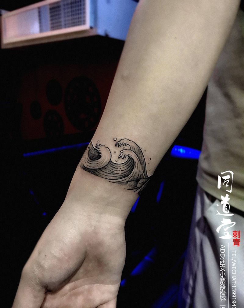 当前位置: 首页 >陕西省西安市纹身店-陕西同道堂文化传播有限公司纹身图案>原创手环纹身图片_点刺水彩纹身图案