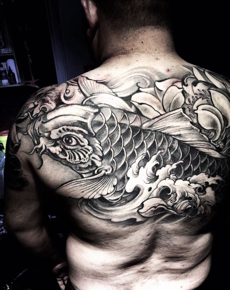 八斤大鲤鱼纹身图片_动物传统肩部原创西安培训教学西安改手稿成品纹身图案