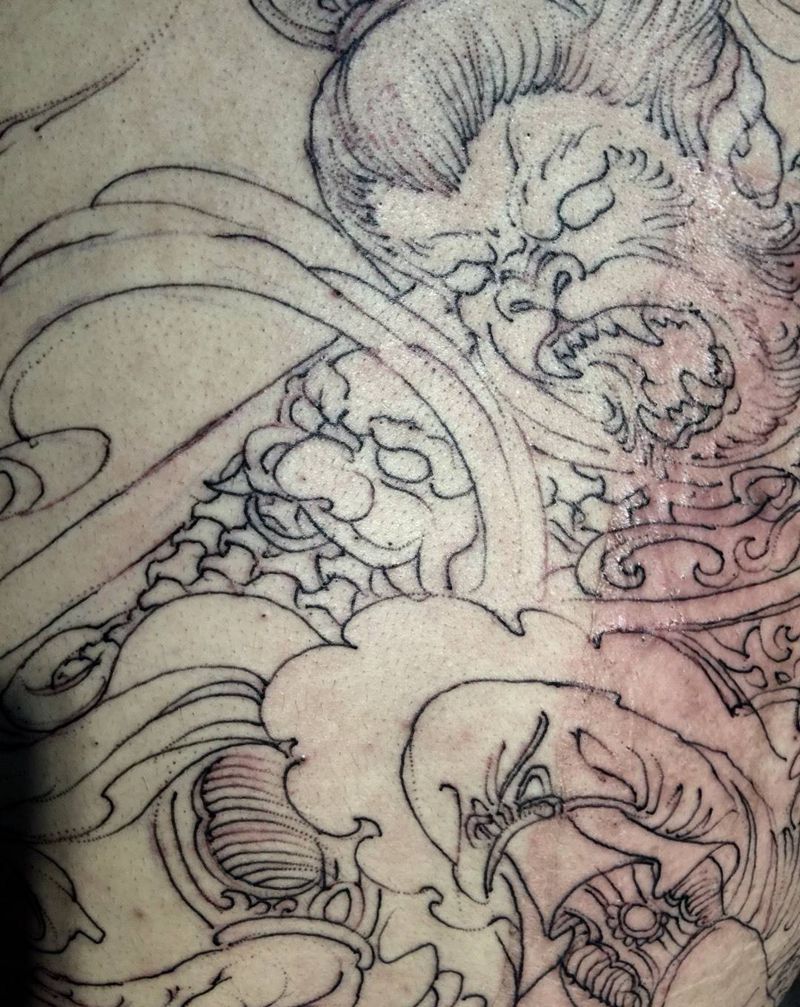 当前位置: 首页 >陕西省西安市纹身店-陕西同道堂文化传播有限公司纹身图案>斗战胜佛纹身图片_西安传统写实动物宗教背部手稿成品纹身图案
