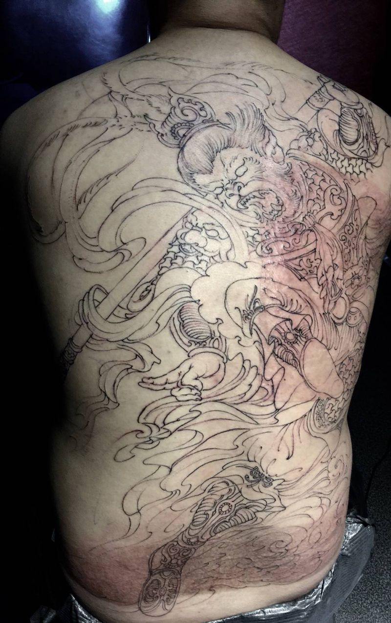 斗战胜佛纹身图片_西安传统写实动物宗教背部手稿成品纹身图案
