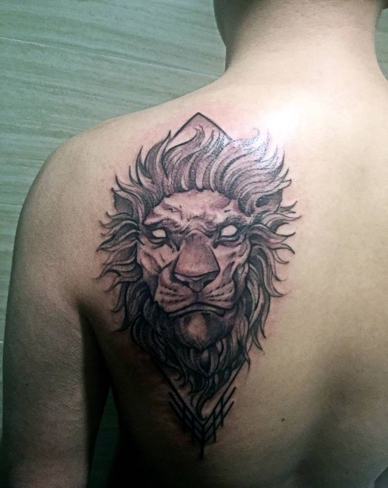 狮子纹身图片_动物宗教原创教学培训同道堂写实传统欧美背部纹身图案
