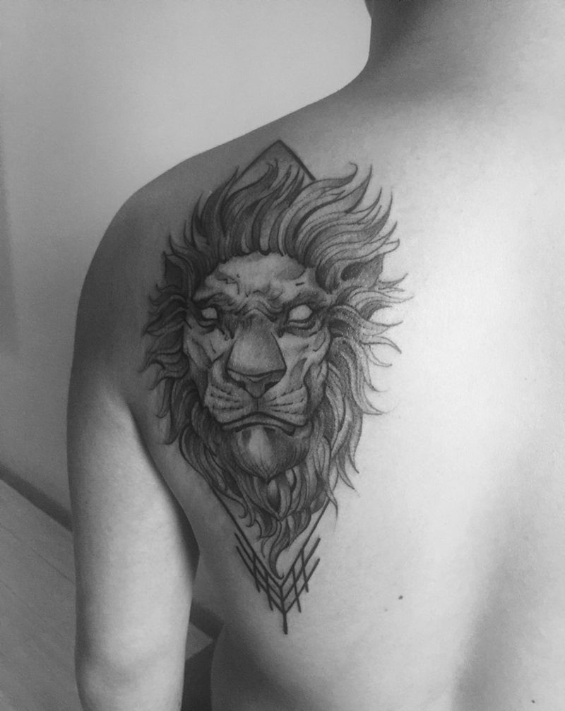 狮子纹身图片_动物宗教原创教学培训同道堂写实传统欧美背部纹身图案