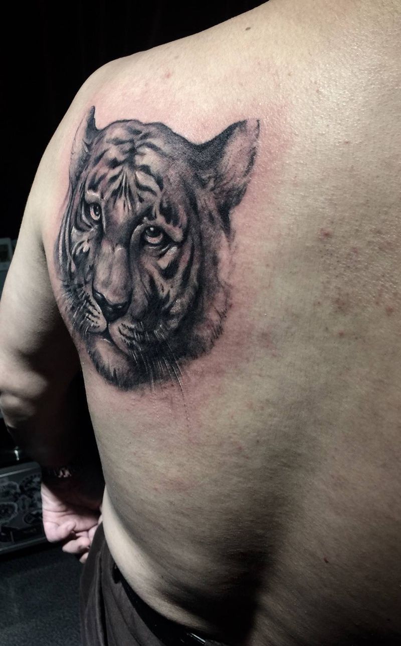 老虎纹身纹身图片_动物写实肩部手稿西安原创培训学纹身图案