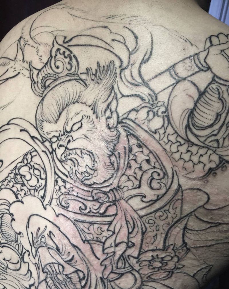 大圣归来!纹身图片_人物宗教原创手稿西安培训传统纹身图案