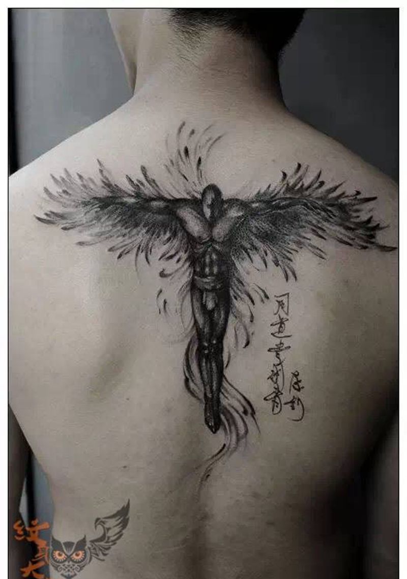 黑灰满背纹身图案