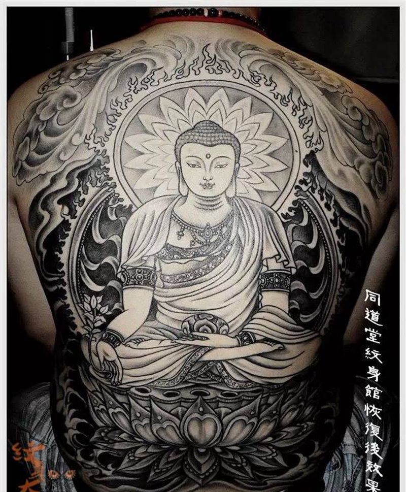 黑灰满背纹身图案