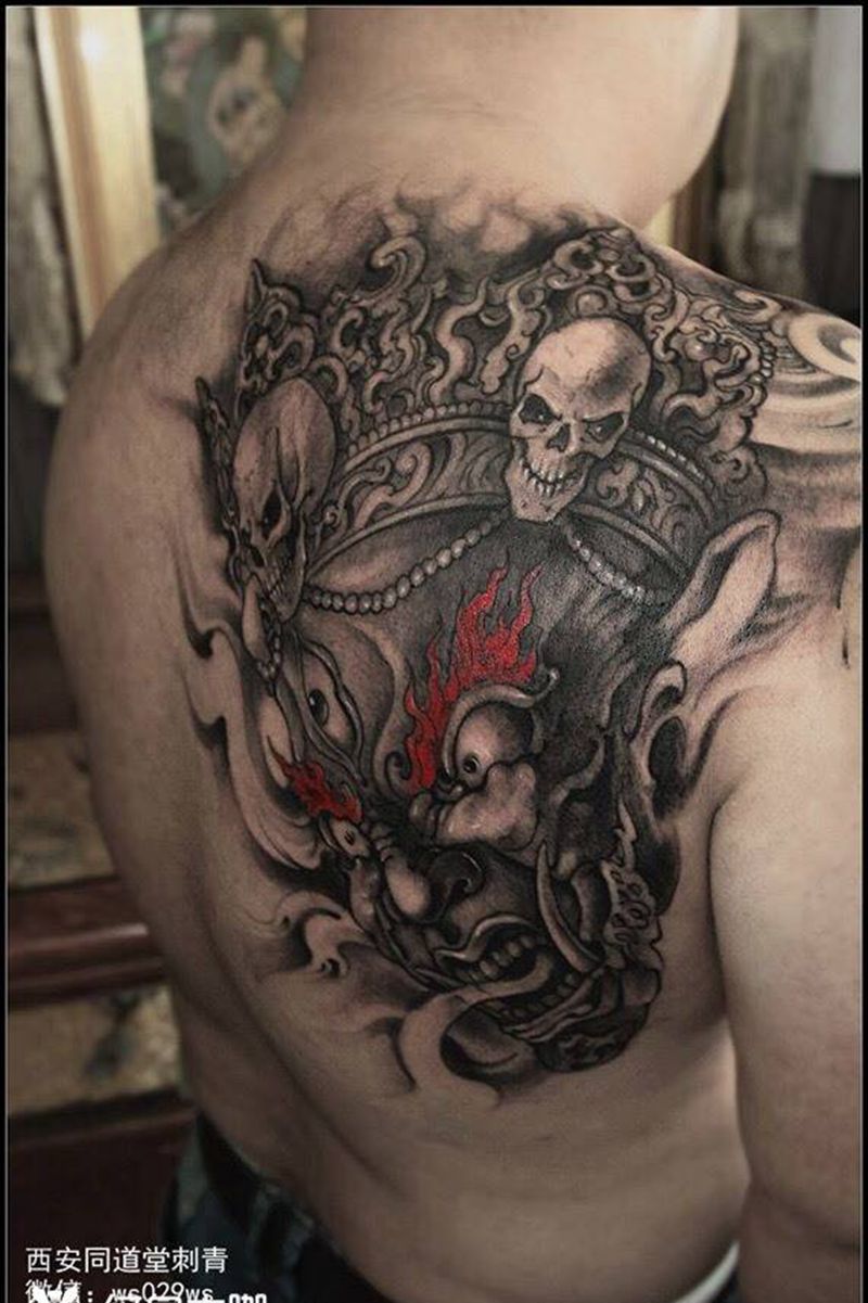 黑灰满背纹身图案