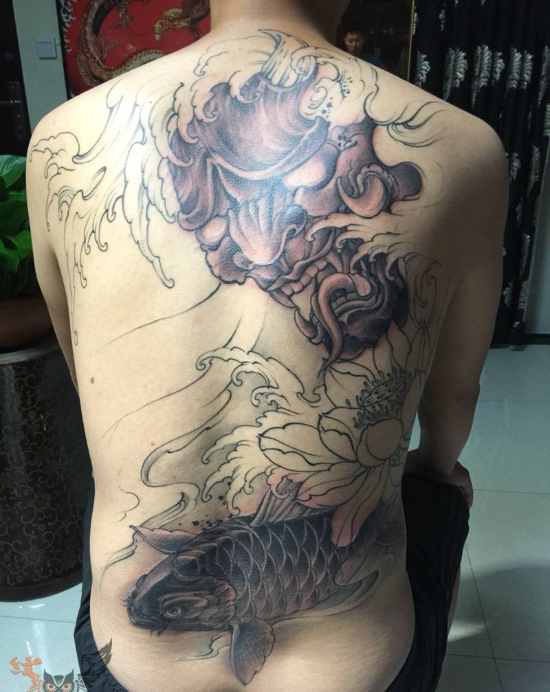 • 黑灰满背纹身图案