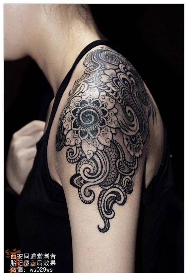 • 纹身吧推荐的披肩图腾半胛纹身图案作品展示