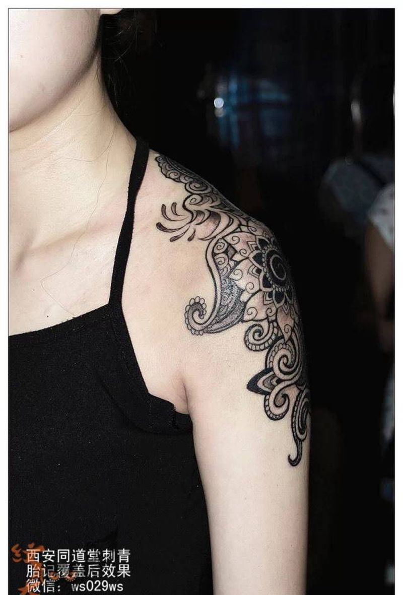 同道堂刺青胎记遮盖对比纹身图片_写实国画欧美几何图腾原创胸部臀部腹部手臂纹身图案
