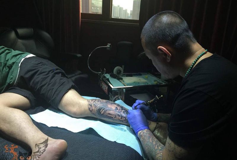 • T网红王老大花腿龙纹身图片_腿部新传统纹身图案