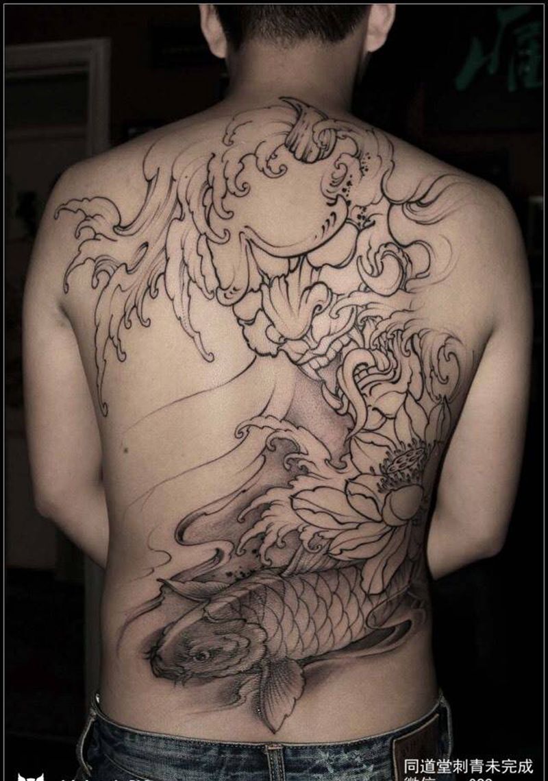 西安纹身#般若鱼纹身纹身图片_传统写实肖像宗教鬼神图腾原创背部肩部腰部纹身图案