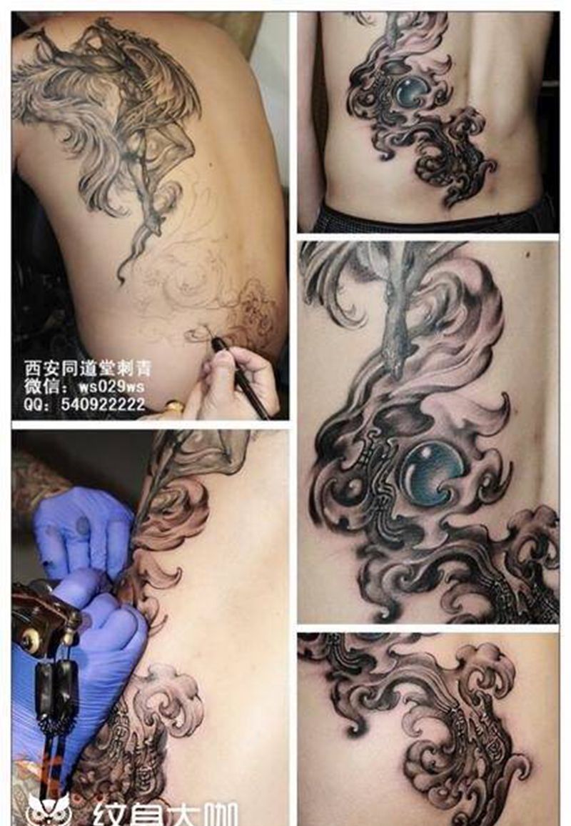 黑灰满背纹身图案