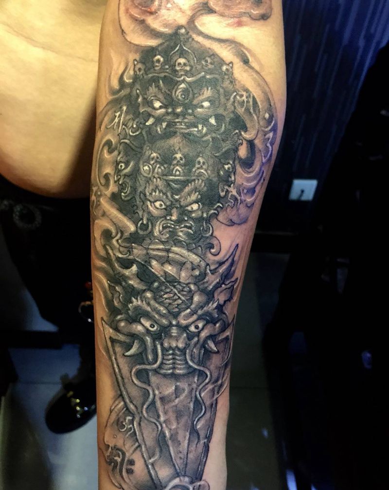 西安纹身降魔杵纹身纹身图片_欧美传统写实鬼神手稿西安成品西安刺青纹身图案