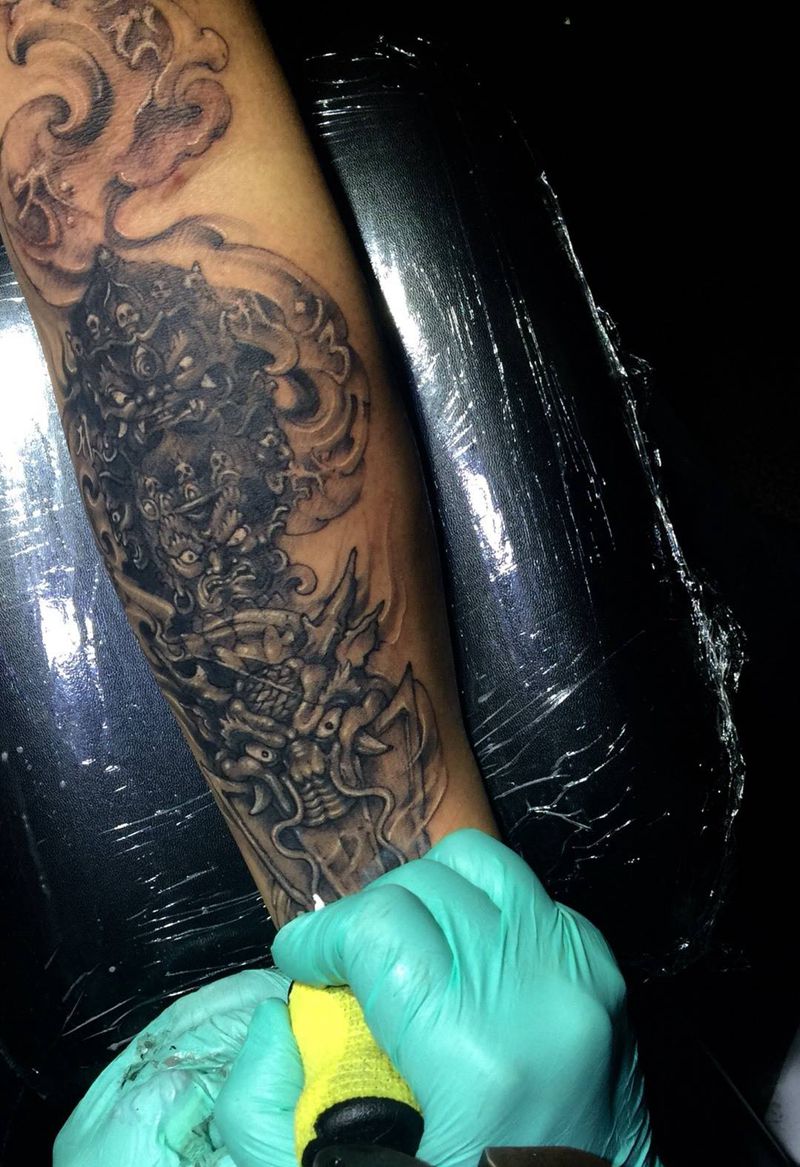 西安纹身降魔杵纹身纹身图片_欧美传统写实鬼神手稿西安成品西安刺青纹身图案