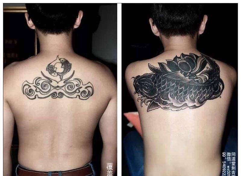 黑灰满背纹身图案