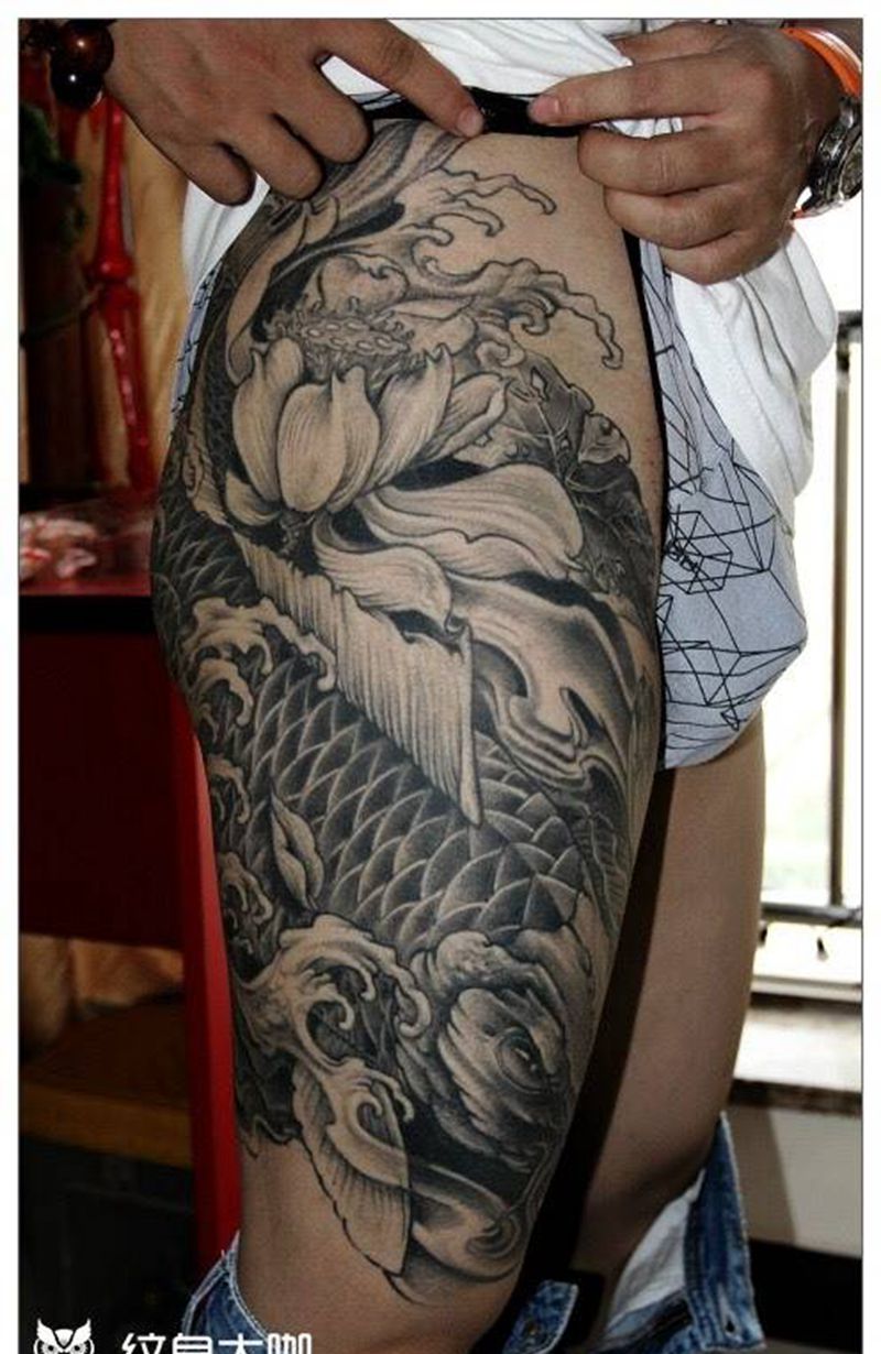 • T网红王老大花腿龙纹身图片_腿部新传统纹身图案