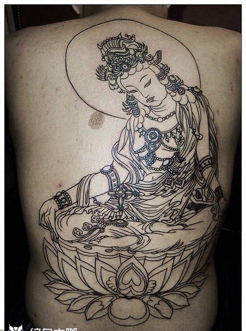 西安纹身#佛像纹身纹身图片_西安西安刺青修改宗教人物写实传统原创背部手稿纹身图案