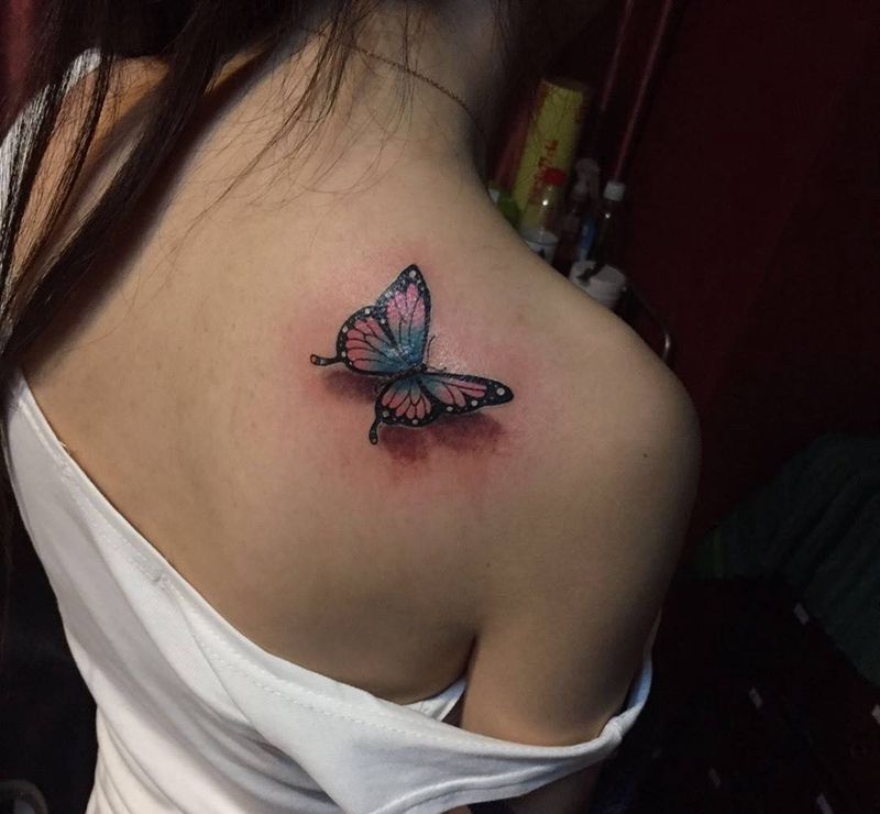当前位置: 首页 >陕西省西安市纹身店-陕西同道堂文化传播有限公司纹身图案>蝴蝶纹身图片_成品手稿背部传统动物原创培训教学纹身图案