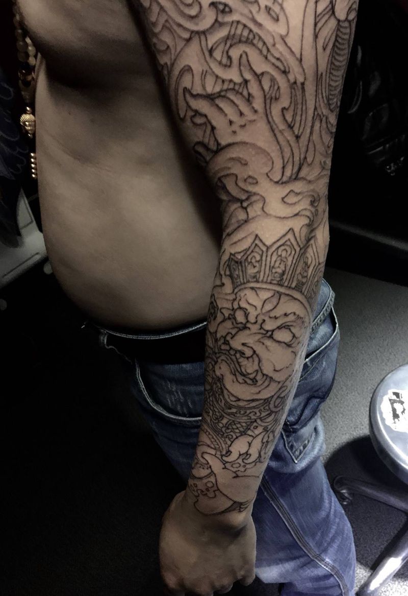 当前位置: 首页 >陕西省西安市纹身店-陕西同道堂文化传播有限公司纹身图案>西安纹身#四大天王花臂!纹身图片_西安改西安欧美传统写实宗教鬼神原创纹身图案