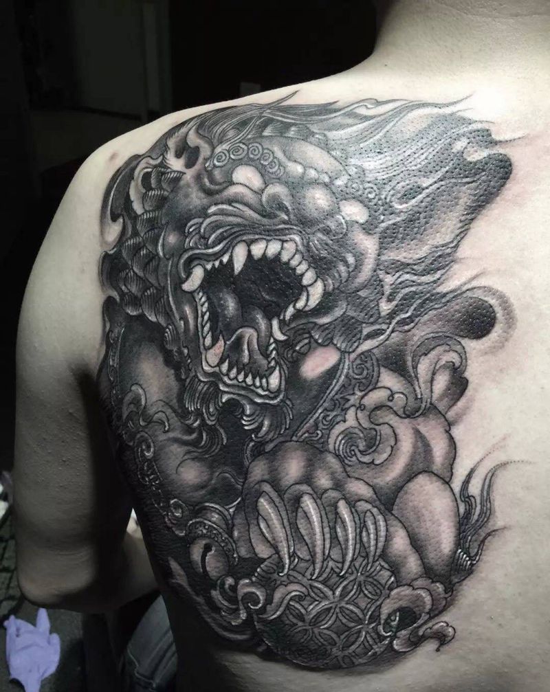 • 黑灰满背纹身图案