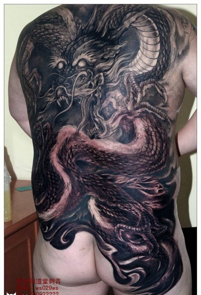 黑灰满背纹身图案