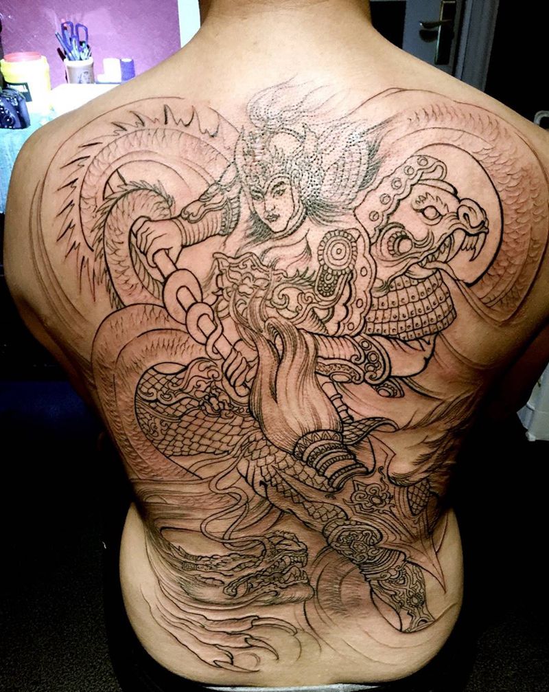 8小时完成纹身图片_成品手稿人物传统同道堂教学培训背部纹身图案