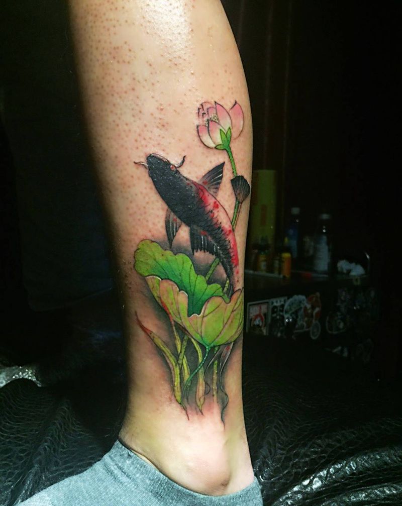 当前位置: 首页 >陕西省西安市纹身店-陕西同道堂文化传播有限公司纹身图案>小腿水墨鱼纹纹身图片_成品手稿原创腿部传统国画培训教学纹身图案