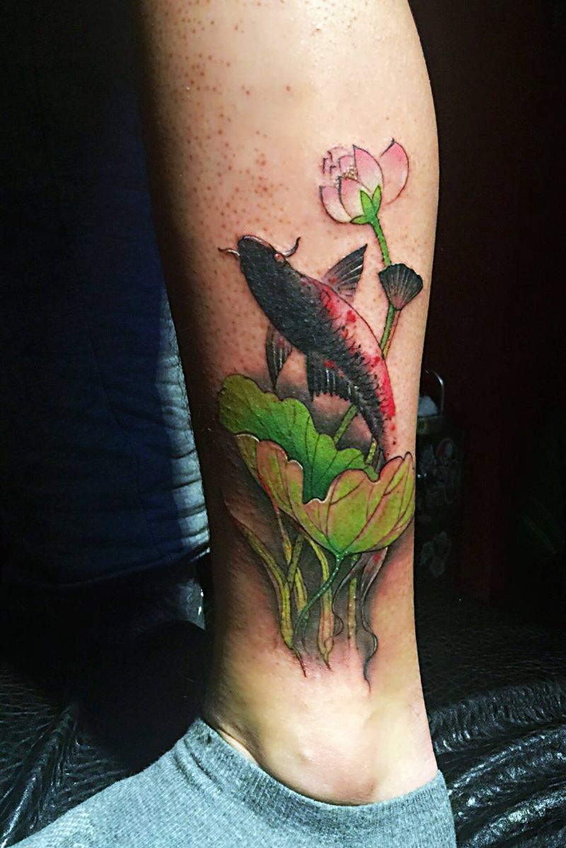 当前位置: 首页 >陕西省西安市纹身店-陕西同道堂文化传播有限公司纹身图案>小腿水墨鱼纹纹身图片_成品手稿原创腿部传统国画培训教学纹身图案