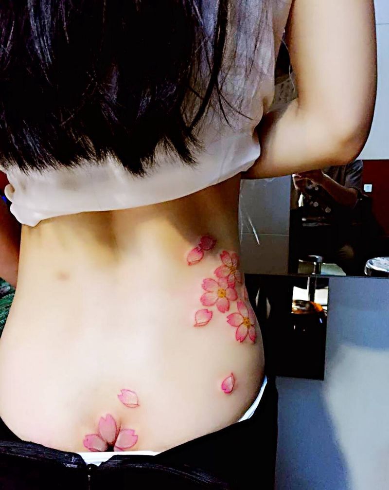 桃花三月纹身图片_成品手稿插画臀部传统原创教学西安改培训纹身图案
