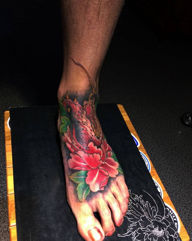 • T网红王老大花腿龙纹身图片_腿部新传统纹身图案