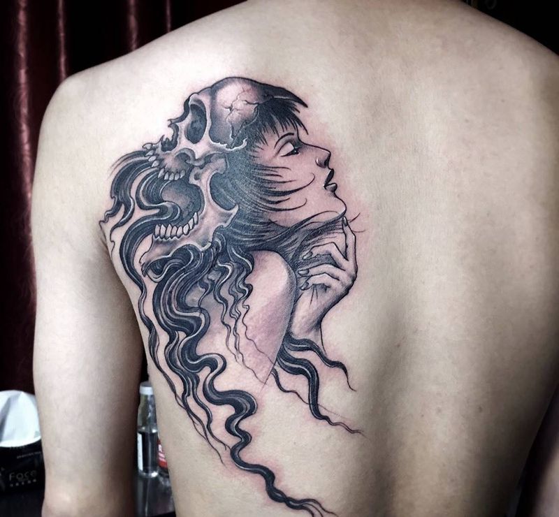 • 黑灰满背纹身图案