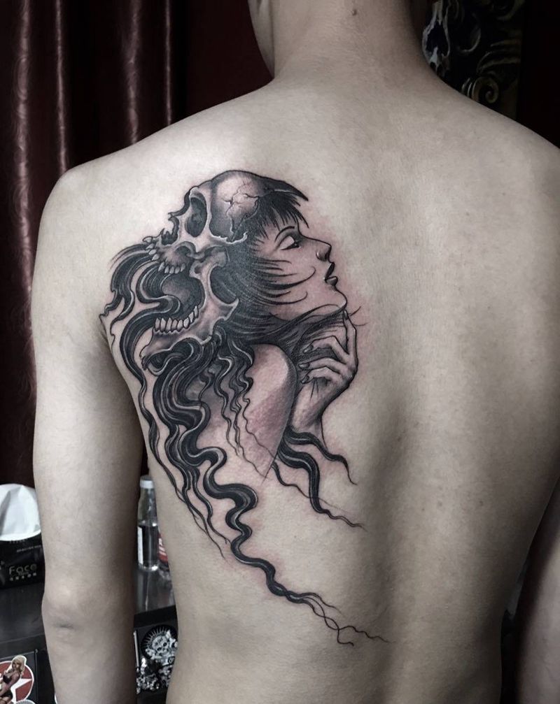 天使与魔鬼纹身图片_背部宗教人物原创鬼神欧美手稿成品纹身图案