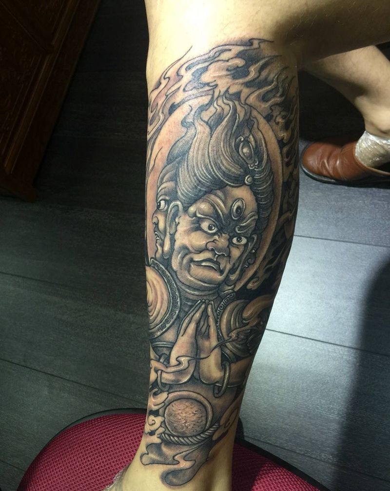 明王纹身纹身图片_成品手稿插画腿部传统写实原创鬼神宗教西安改纹身图案