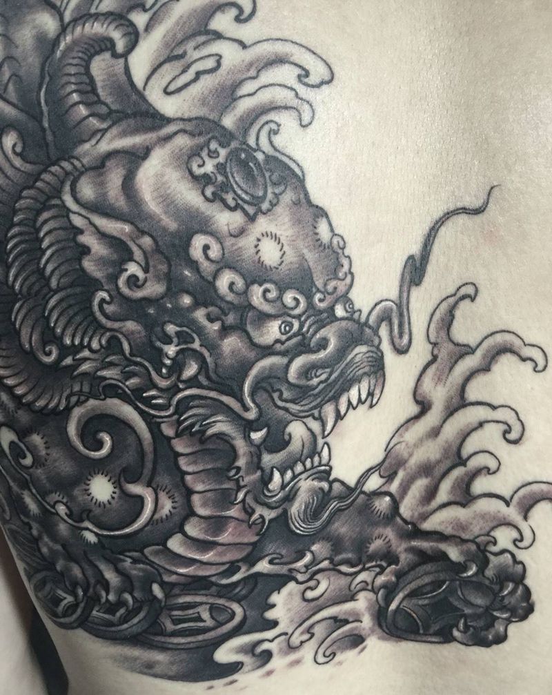 貔貅纹身纹身图片_成品手稿插画肩部传统写实国画动物宗教同道堂纹身图案
