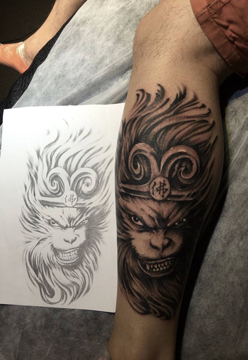 怒猴!纹身图片_成品手稿腿部传统欧美人物动物鬼神培训纹身图案
