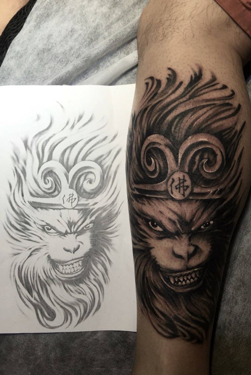 怒猴!纹身图片_成品手稿腿部传统欧美人物动物鬼神培训纹身图案