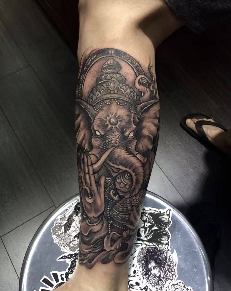 象鼻财神纹身图片_成品手稿插画传统写实宗教鬼神图腾纹身图案