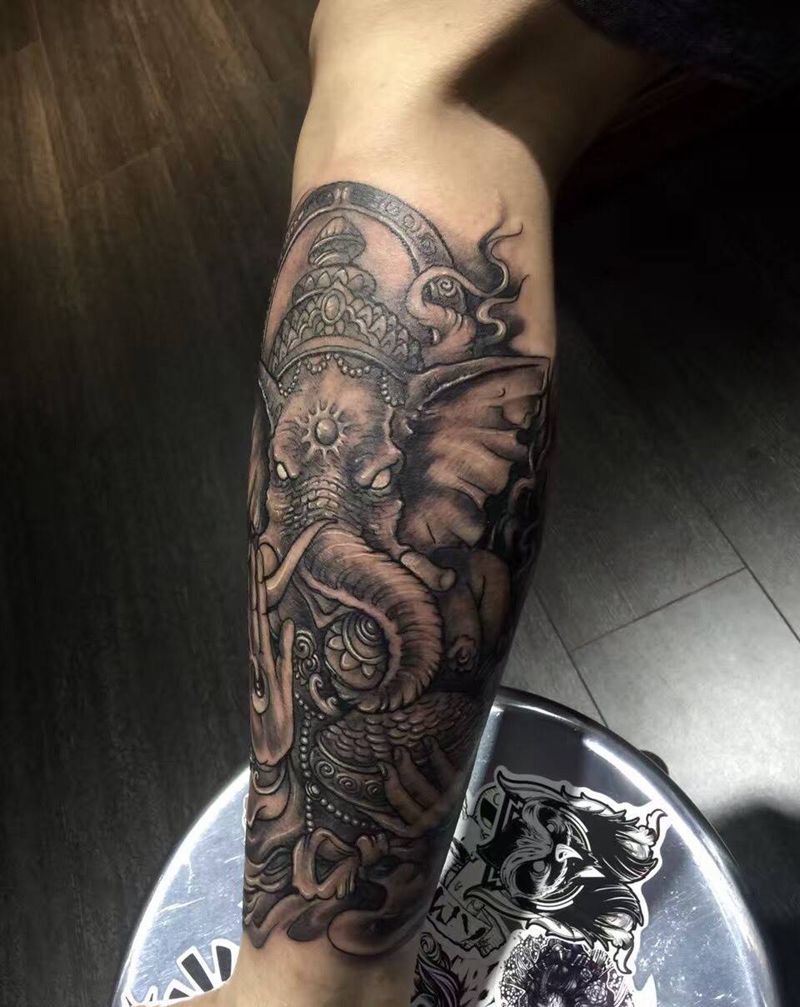 象鼻财神纹身图片_成品手稿插画传统写实宗教鬼神图腾纹身图案