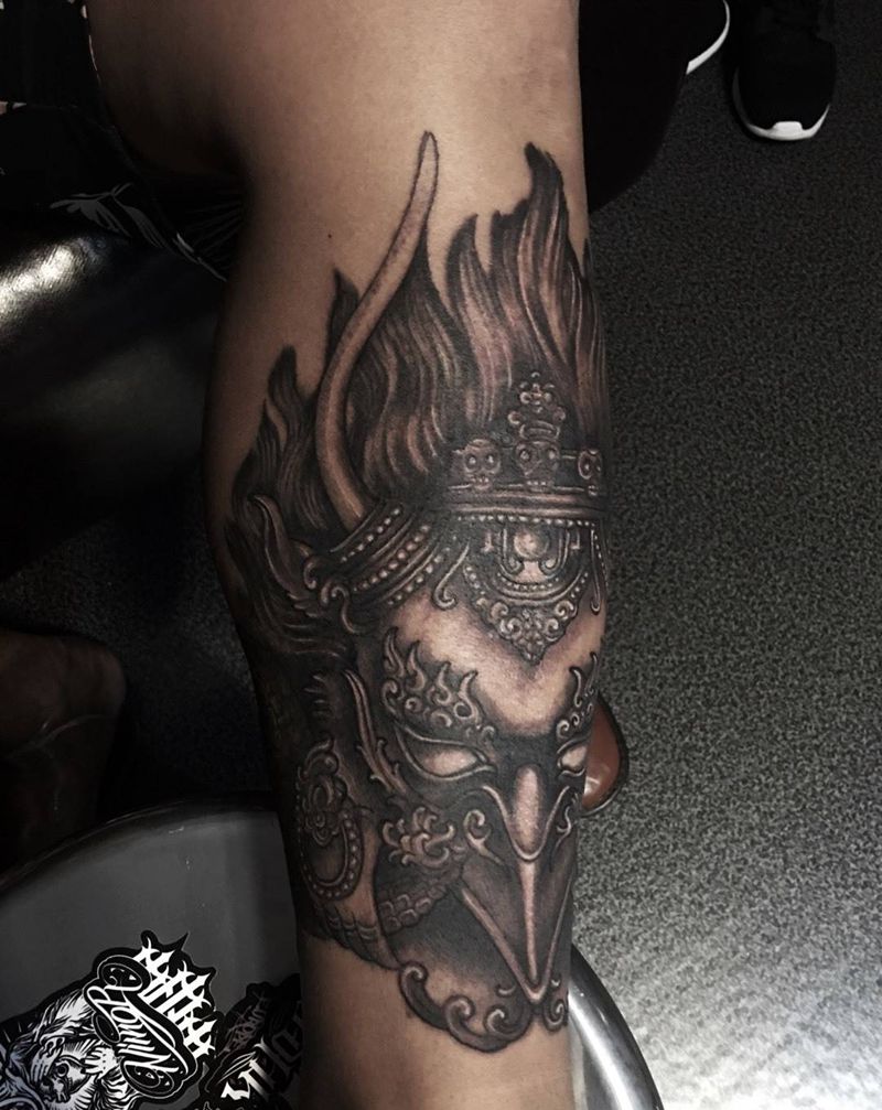 当前位置: 首页 >陕西省西安市纹身店-陕西同道堂文化传播有限公司纹身图案>大鹏金翅鸟纹身图片_成品手稿插画腿部传统国画写实鬼神原创纹身图案